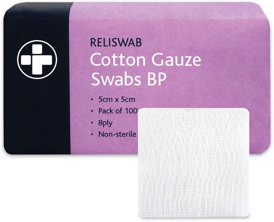 RELISWAB COTTON GAUZE SWABS BP 5CMX5CM 100PCS